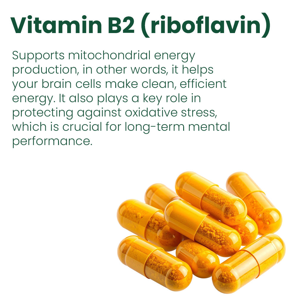 *Vitamin B2 contributes to energy metabolism and helps reduce tiredness and fatigue.