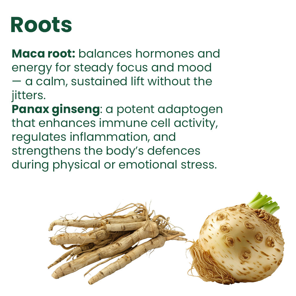 Bright, vibrant, and refreshing. Lemon-Aid combines ceremonial matcha with ginseng, maca root, and ginkgo biloba for a smooth lift in focus and vitality, with an immunity and beauty complex of vitamins A, B6, B12, C and D, plus folic acid, iron, zinc and copper to support immune defence and contribute to healthy skin, hair, and nails. Finished with zesty lemon, aromatic yuzu, and a gentle hint of ginger, it tastes like a crisp citrus iced tea.